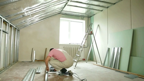 - Для перегородок: важно соблюдать вертикальность каркаса, а листы крепить с двух сторон. Для звукоизоляции можно использовать минеральную вату между листами.